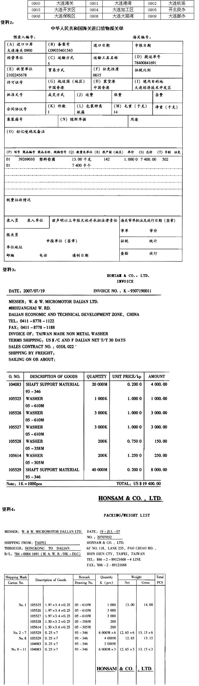 资料1: 万威微型电机大连有限公司(2102245678)持C09033401543登记手册进口第一项料件塑料垫圈(非法检商品,法定计量单位为千克)。 大连海关部分关区代码如下表:
