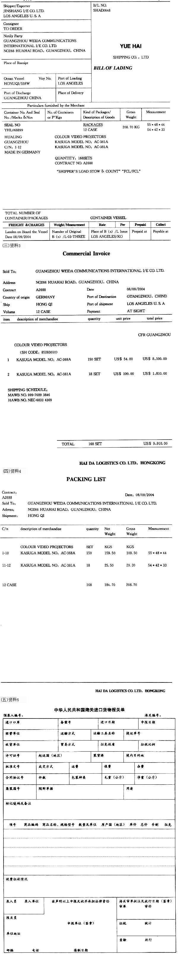 D.填写唛码和“委托广州威达无线电通讯进出口公司进口”字样